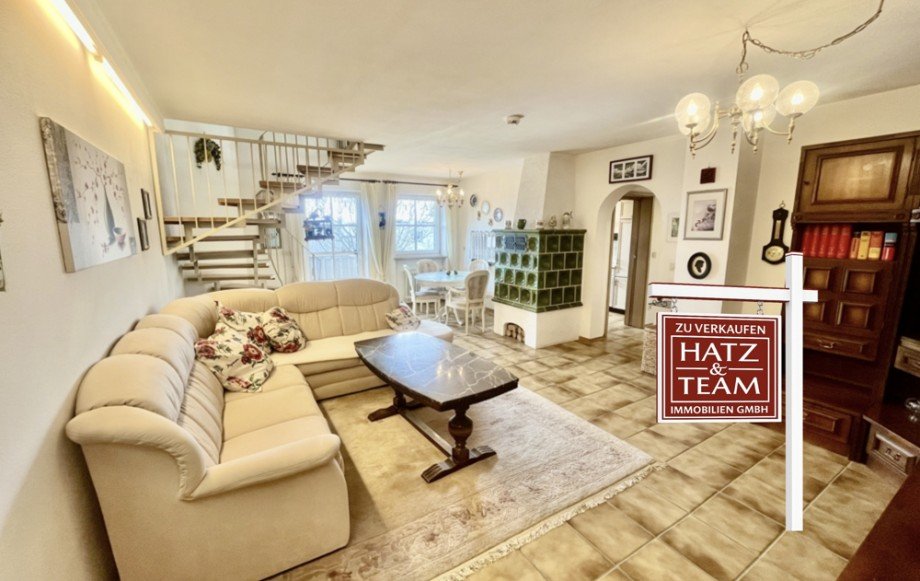 Die untere Ebene beeindruckt mit einem ca. 30 m² großen, lichtdurchfluteten Wohn-Essbereich samt gemütlichem Kaminofen, der für eine behagliche Atmosphäre sorgt. Von hier gelangen Sie direkt auf den überdachten Südwest-Balkon - der perfekte Ort für entspannte Sonnenstunden.